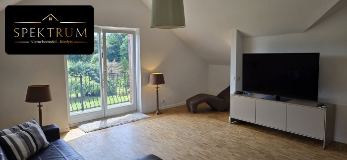 duży pokój telewizyjny z  wyjściem na przestronny balkon z panoramicznym widokiem,